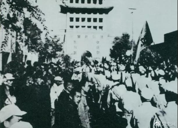 ▲1949年8月,兰州解放。图为第一野战军开进兰州市区。